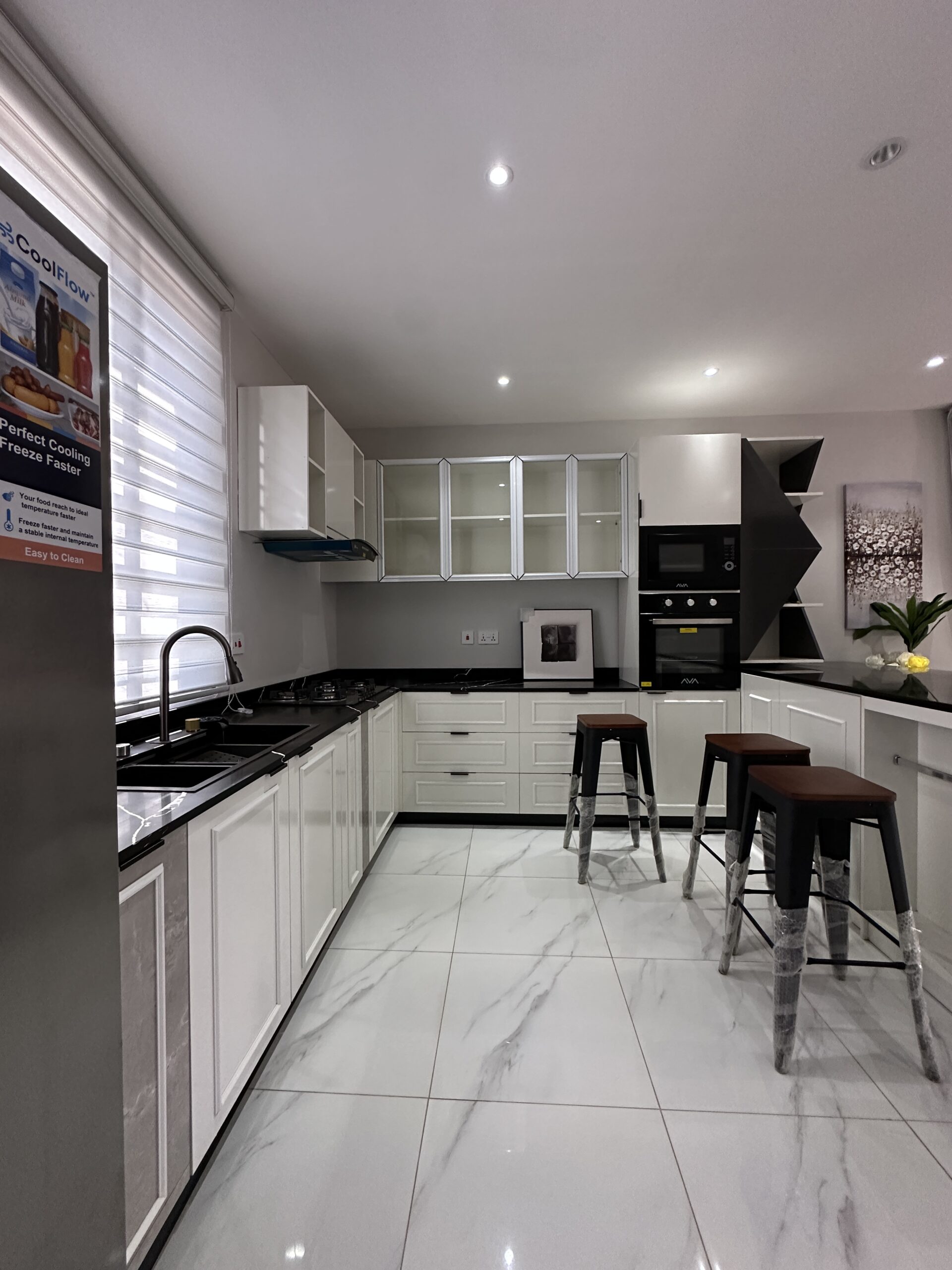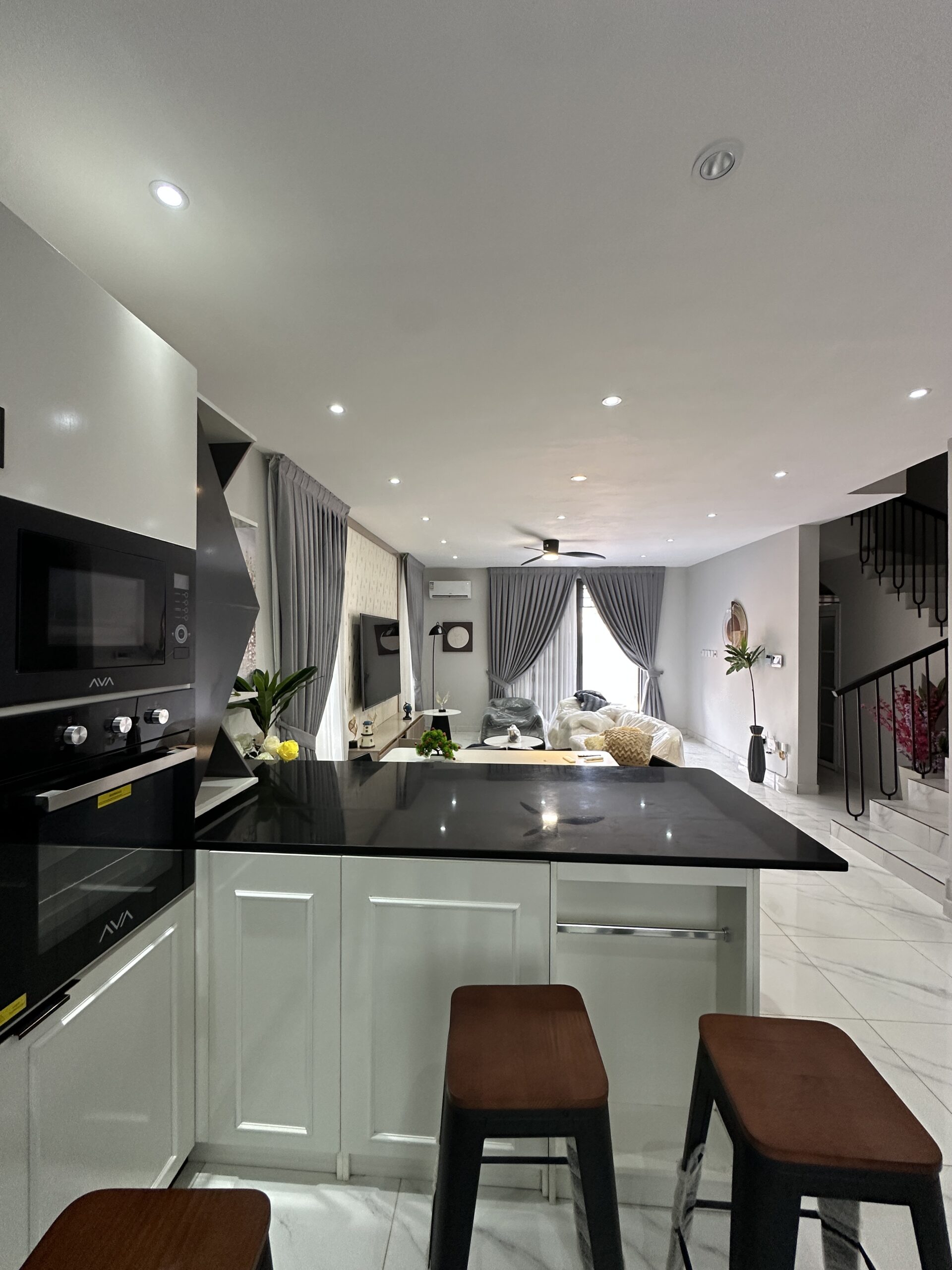β’ Open-plan modern kitchen with high-end appliances